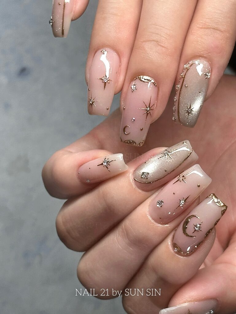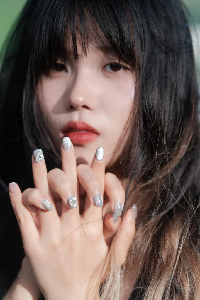 除了純色款式之外,在橫線貓眼美甲的基礎之上,再加上「小星星亮片」點綴,或是搭配帶有毛絮感的「毛衣美甲」設計,都是今年韓國爆紅的流行組合!