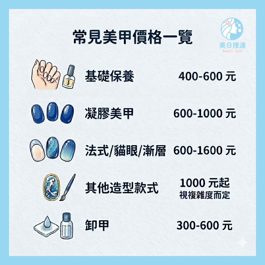 ⚠️注意:每一間工作室的報價方式不太一樣,有的會將「基礎保養」與「美甲造型」的費用拆開來計算,有的則是合併計價,建議事前與美甲師確認,避免雙方誤會哦!